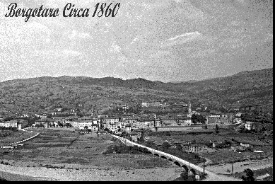 Borgotaro. The photo dates from about 1860. Note the walls and the portal to enter