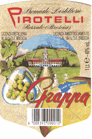 . This is the label for the grappa. Note the picture of Villa Fenaroli. Note the town in Brescia, Rezzato. Label supplied by Andrea and Yvonne.